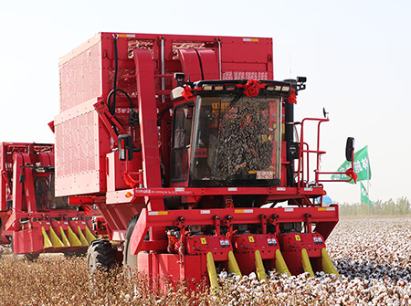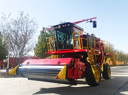 4MZD-3C型,自走式圆捆打包棉花收获机由新疆z6com人生就是搏自主研发生产可一次性可完成对棉花的采摘、输送、集箱打包、卸棉作业。