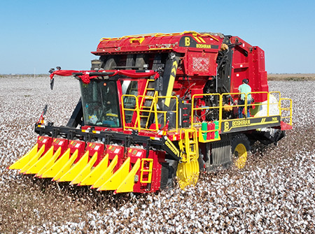 4MZD-6C\6D型自走式圆捆打包棉花收获机由新疆z6com人生就是搏自主研发生产,结合多年的技术积累、现已成为性能优异,质量可靠的六行圆捆打包棉花收获机,一次可完成对棉花的采摘、输送、集箱、打包、卸棉作业。其操作简单、维护方便、采净率高,适合大型棉花种植区域使用。