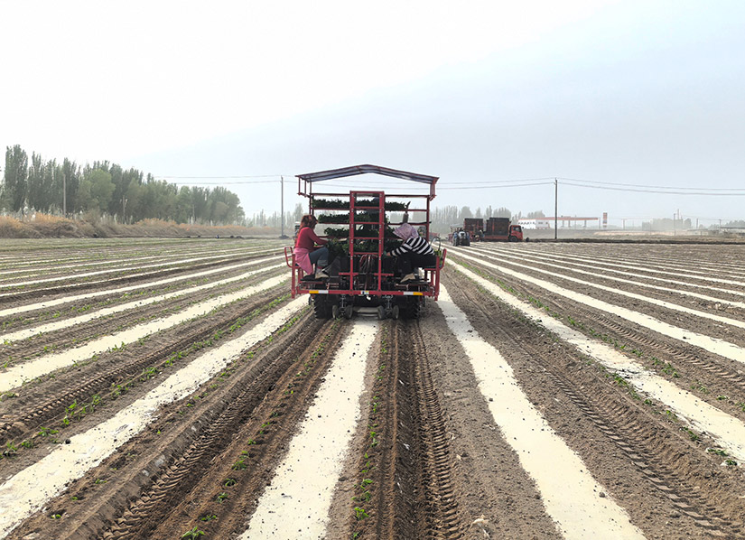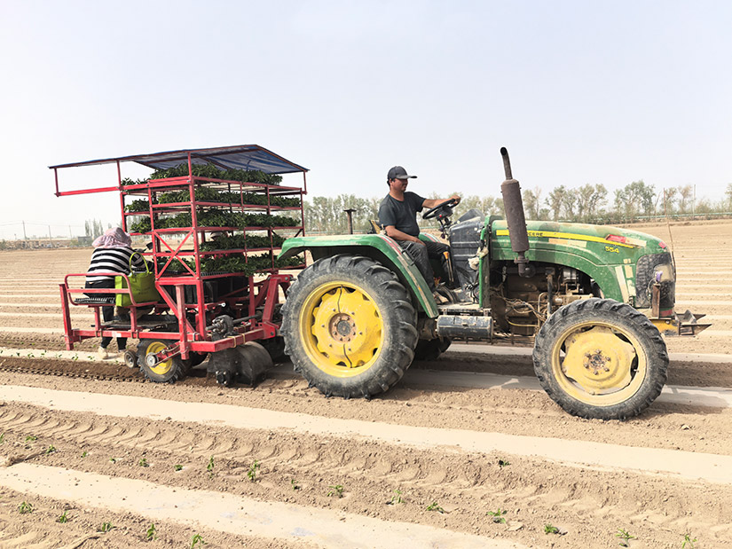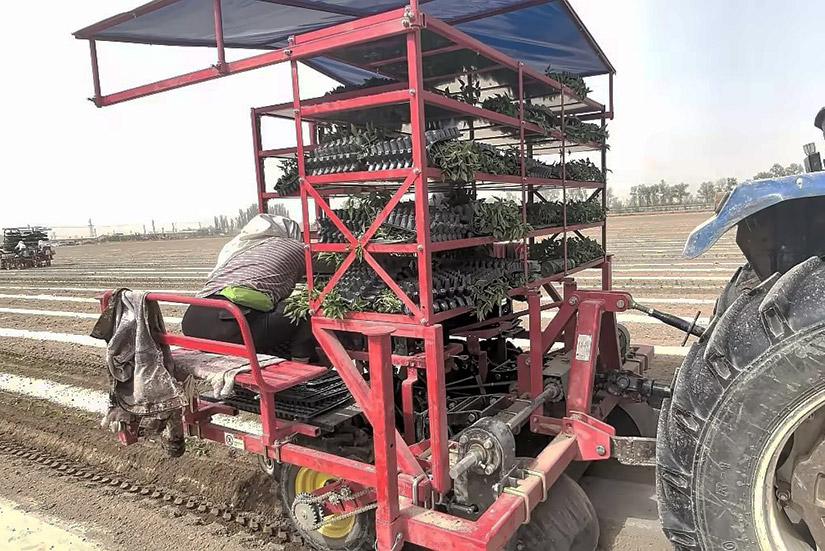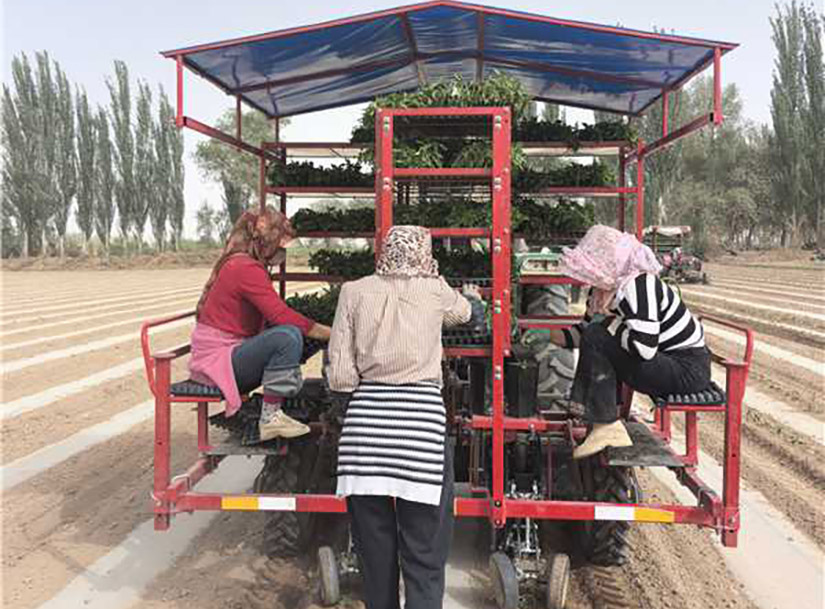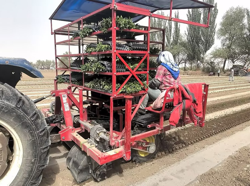 半自动蔬菜移栽机由新疆z6com人生就是搏为适应新疆农艺研发生产的一款移栽机,适应在平地,铺膜地及垄上移栽辣椒,番茄等钵体育苗的农作物。