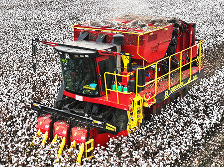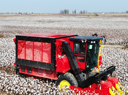 4MZD-3C型,自走式圆捆打包棉花收获机由新疆z6com人生就是搏自主研发生产可一次性可完成对棉花的采摘、输送、集箱打包、卸棉作业。