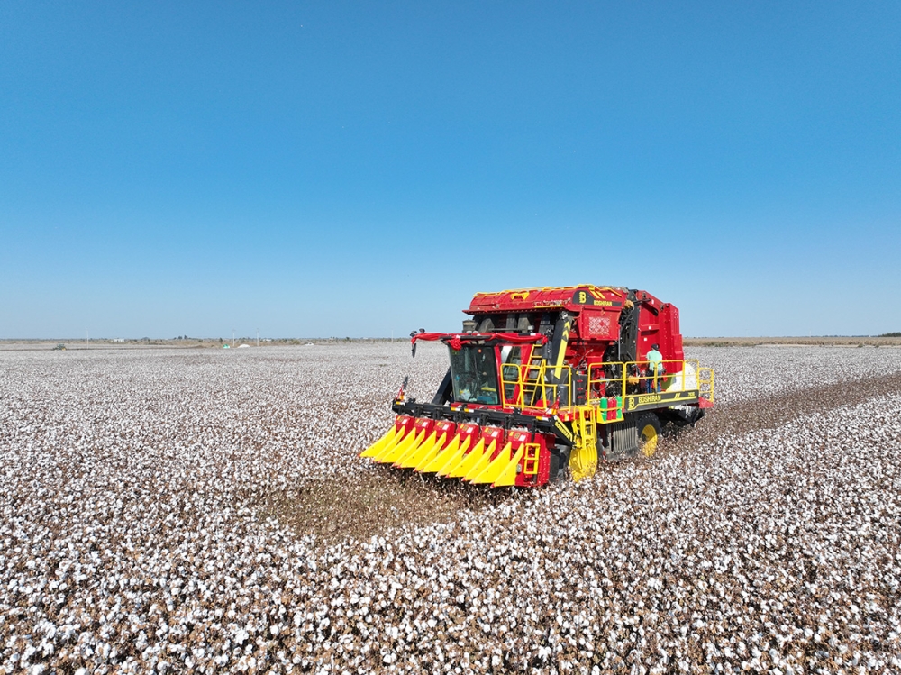 4MZD-6C\6D型自走式圆捆打包棉花收获机由新疆z6com人生就是搏自主研发生产,结合多年的技术积累、现已成为性能优异,质量可靠的六行圆捆打包棉花收获机,一次可完成对棉花的采摘、输送、集箱、打包、卸棉作业。其操作简单、维护方便、采净率高,适合大型棉花种植区域使用。